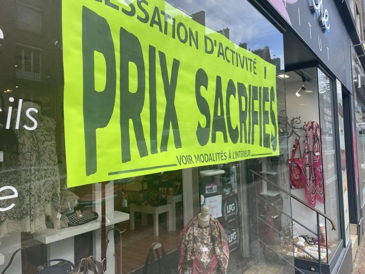 Une grande pancarte jaune a fait son apparition sur la vitrine de l’Institut Catherine, dans la rue du 6-Juin de Flers (Orne), en cette mi-mars 2026. Cessation d’activités, prix cassés
