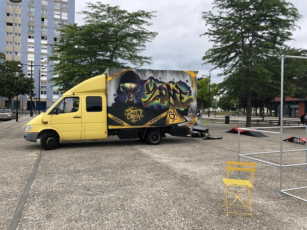 Voilà l’objectif que se sont fixé les membres de Zone 61 avec ce camion, acquis il y a trois mois et graffé à l’occasion par l’artiste Scoe. « L’idée est de faciliter l’accès aux cultures urbaines pour tous, dans la ville et à la campagne, dans les communes alentour, explique Jessy Vong. On en a déjà contacté plusieurs pour proposer ce projet. Quand il faut faire vingt ou trente minutes de voiture pour venir faire ça à Alençon, ce n’est pas toujours facile alors on a voulu développer ça. »
