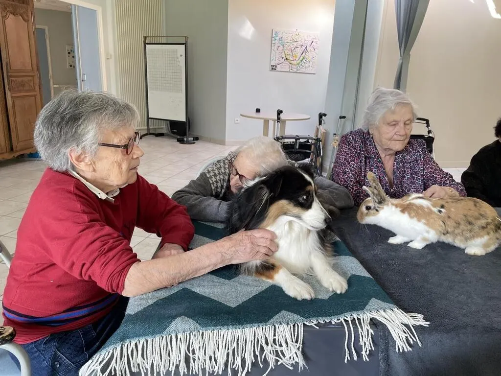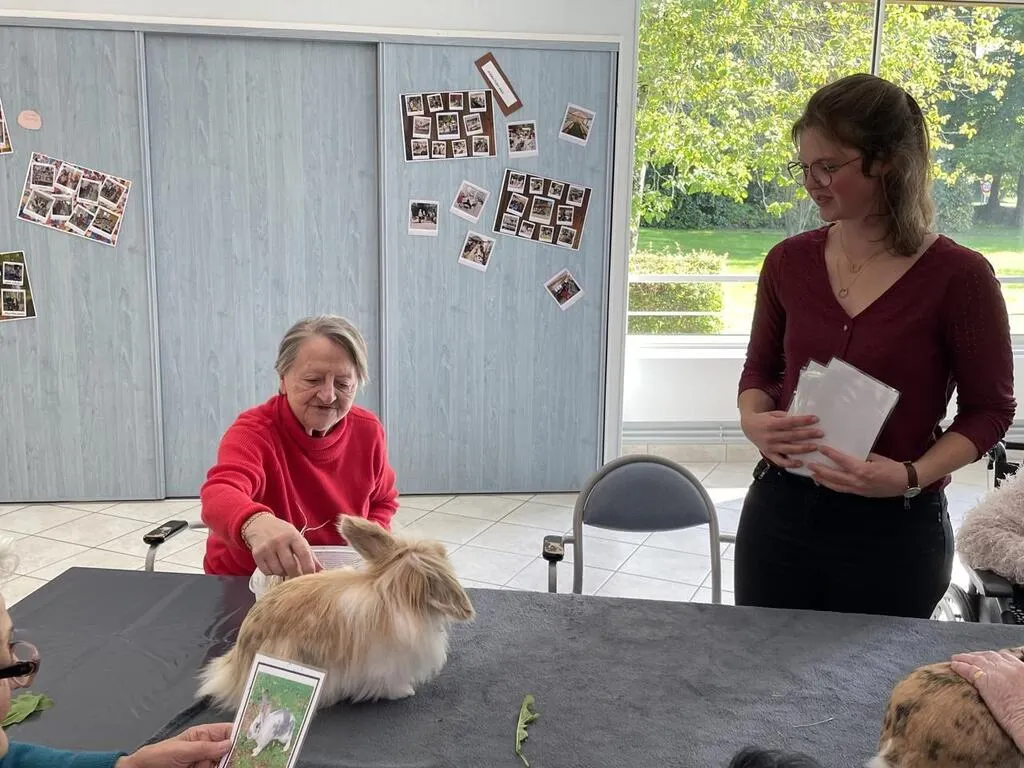« Oh elle est belle avec ses longs poils ! », s’exclame Liliane, résidente à l’Ehpad du Sacré-Cœur à Athis-de-l’Orne, commune déléguée d’Athis-Val-de-Rouvre, dans l’Orne. Sur la table de la grande salle de l’établissement, deux lapines, et un chien, gambadent tranquillement et ...