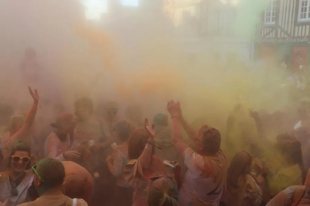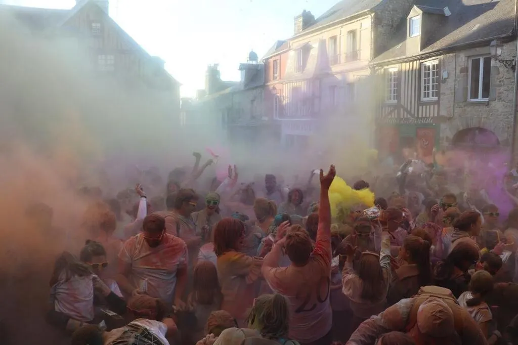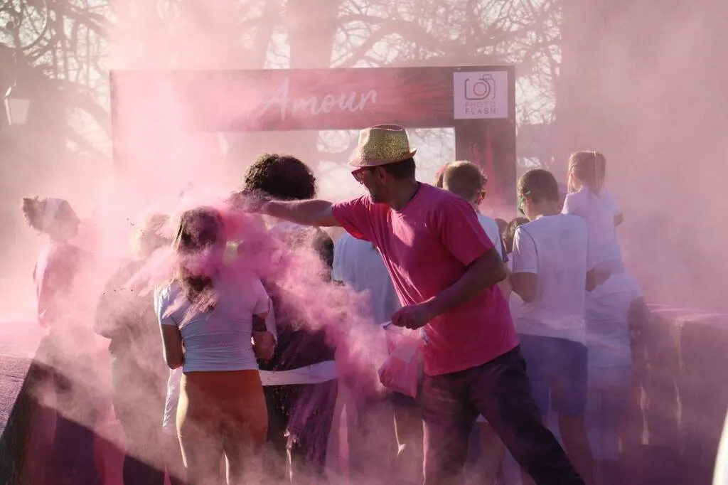 Après un échauffement place Saint-Julien, les coureurs et marcheurs se sont élancés sur le parcours (1,7 km mais qui pouvait être doublé), passant des « portes » où ils ont été poudrés de différentes couleurs. Vers 18 h 30, ils se sont retrouvés sur la place Saint-Julien pour jeter un sachet de poudre colorée en l’air.