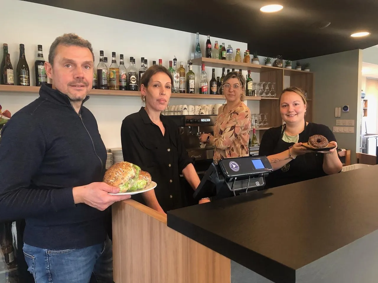 De gauche à droite : Guillaume, Anabela, Danielle et Charlotte (absent, Stéphane), l’équipe du Virage café. © OUEST-FRANCE