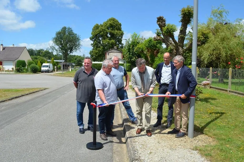 Jeudi 4 juillet 2024 dans l’après-midi à Soligny-la-Trappe (Orne), les travaux d’enfouissement des réseaux, l’éclairage public et le réseau d’eau potable ont été inaugurés. © Ouest-France