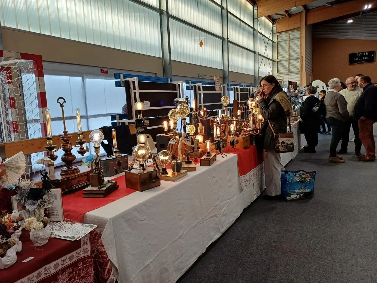 Au gymnase Aline-Lecamus, qui accueillait une partie du marché de l’Avent, au détour d’une allée, Anita Dufossé exposait un large choix de lampes créées à partir d’objets de récupération comme des anciens outils détournés et assemblés pour devenir de véritables œuvres originales et lumineuses. © Ouest-France