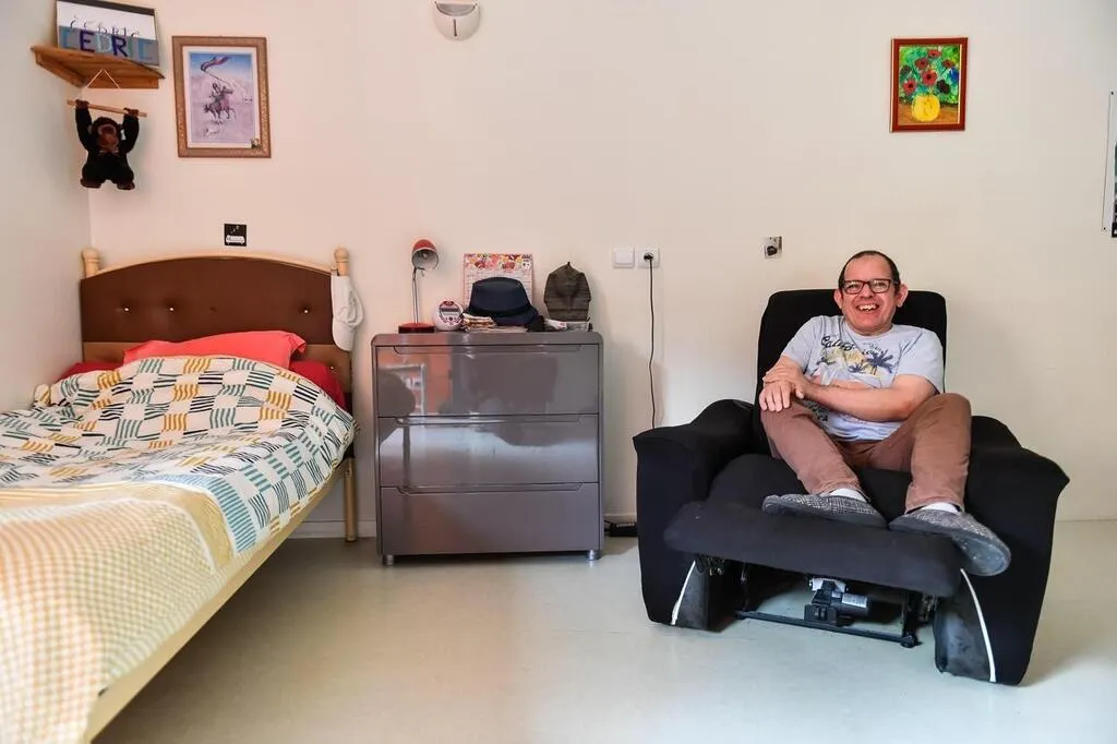Bénédicte et François Blondel ainsi que Liliane Cheneau retracent leur histoire avec leurs enfants Damien et Cédric qui sont aujourd’hui accueillis à l’établissement d’accueil médicalisé La Palorette à Saint-Ovin (Manche). © Mathis Harpham / Ouest-France
