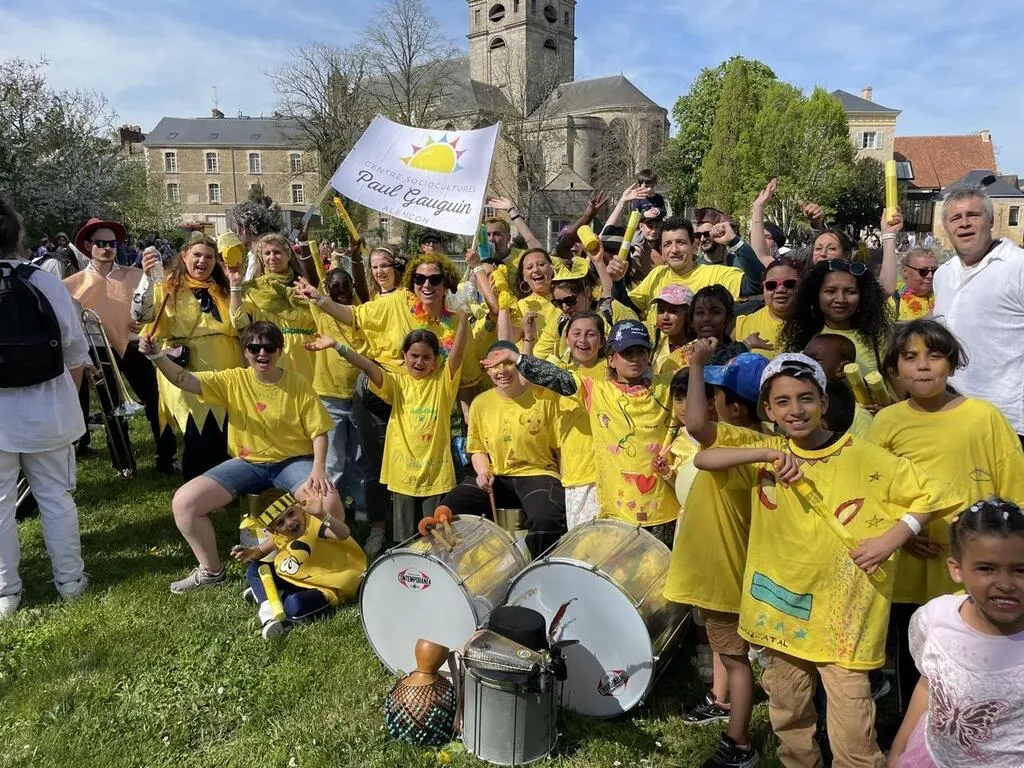 Le centre social Paul-Gauguin, dans le quartier de Perseigne, était en jaune pour cette édition 2024 du carnaval d’Alençon (Orne). © Ouest-France