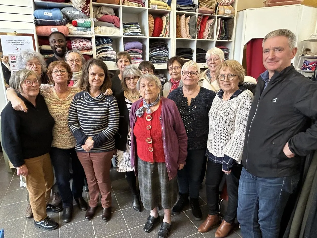 Renée, entourée ici des bénévoles du Secours populaire présents lundi 23 février 2026 à Granville (Manche). © OUEST-FRANCE
