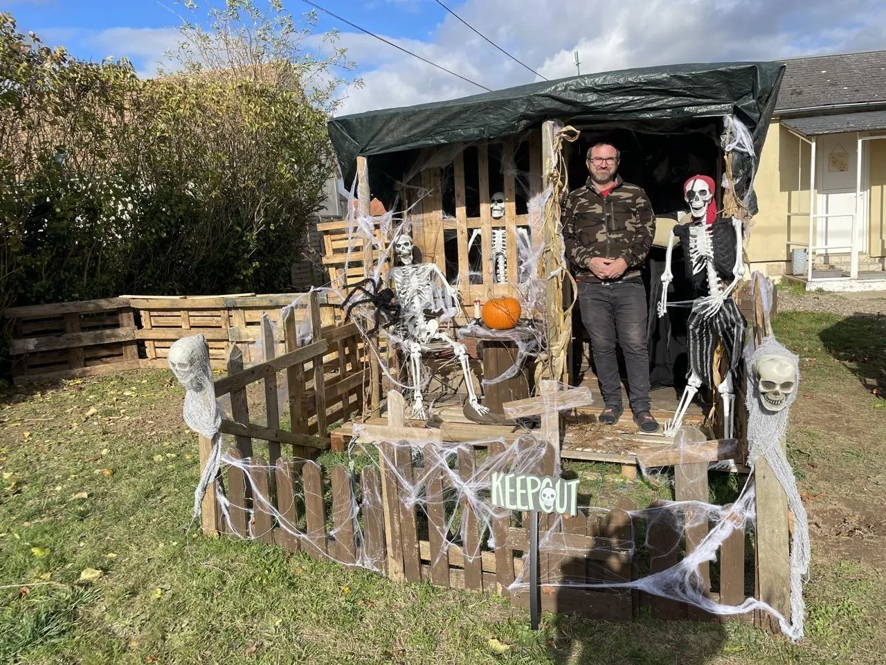 Depuis 2021 qu’il habite dans la rue des Sainfoins, à Sarceaux (Orne), Ludovic Lesourd, 39 ans, se plaisait à décorer son jardin pour Noël. Depuis un mois, il a sauté le pas pour Halloween.  Ça me plaît, la déco, alors j’ai regardé des tutos sur InternetÂ