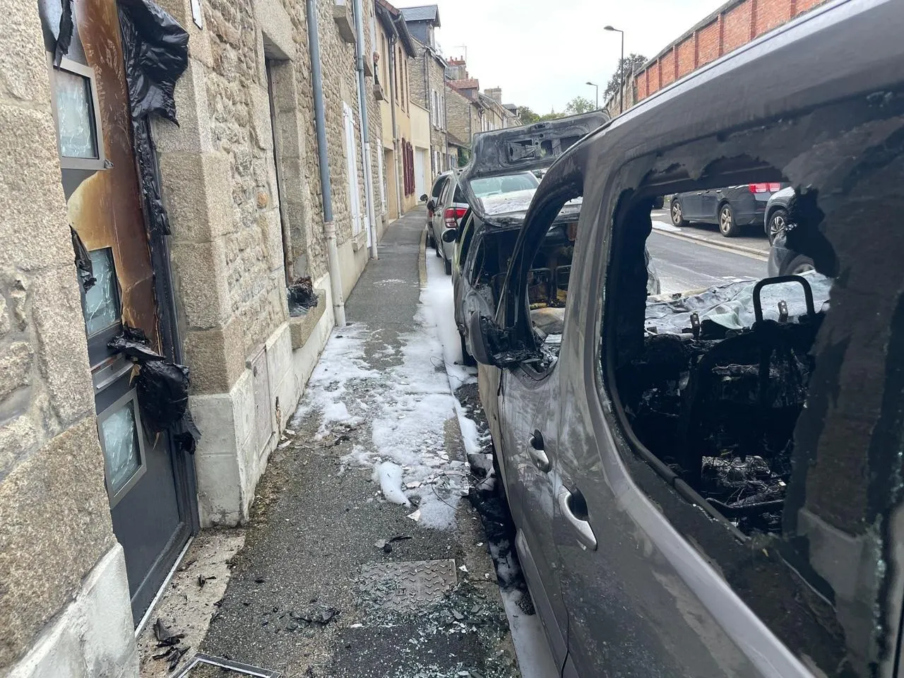 Deux véhicules ont pris feu dans la rue des Fossés-de-la-Barre, à Alençon (Orne), dans la nuit du mercredi 3 au jeudi 4 septembre 2025. © Ouest-France