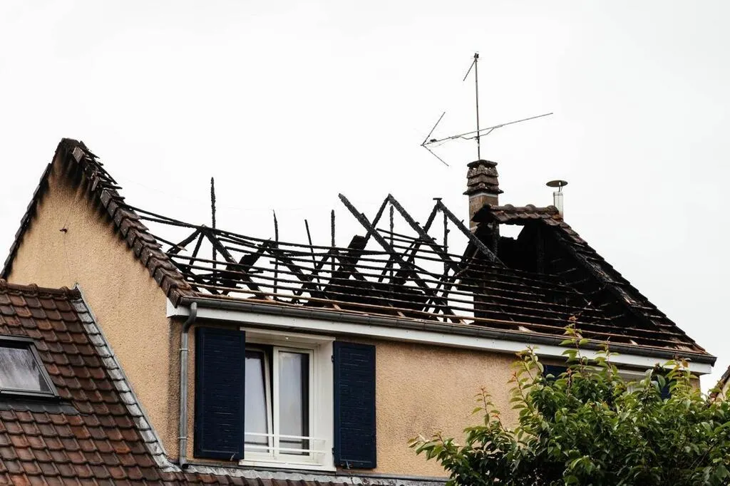 La toiture a complètement été détruite par les flammes. © Ouest-France
