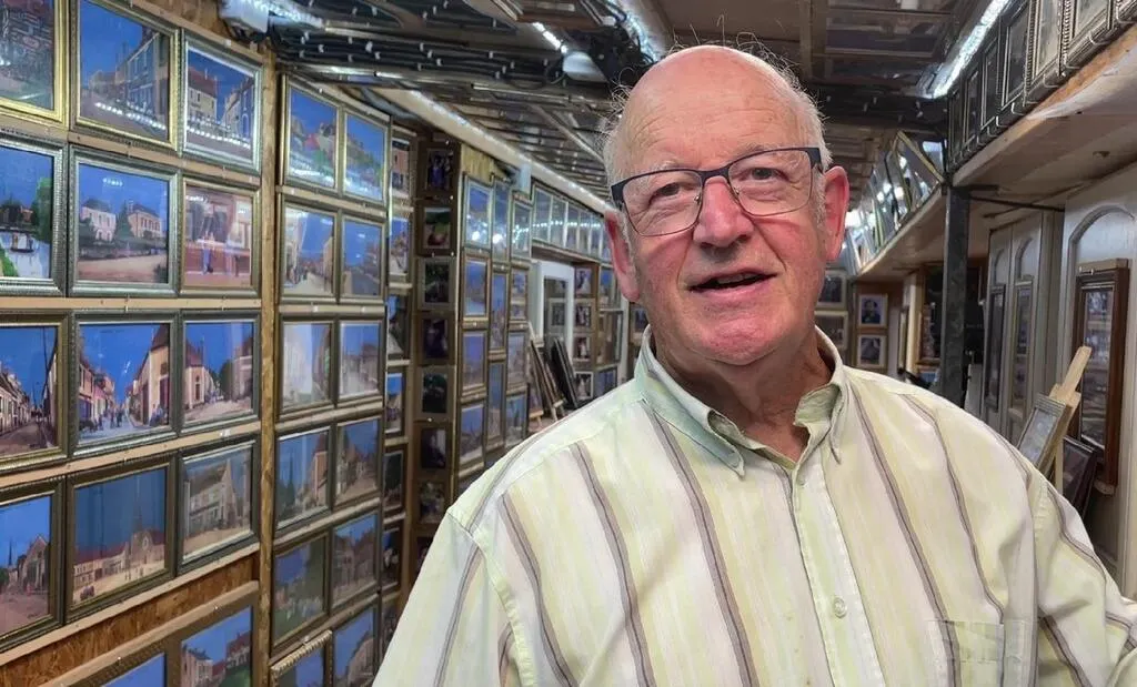 Raymond Pigeard, 72 ans, retraité à Mâle (Orne), dans le Perche, expose un millier d’agrandissements de cartes postales anciennes qu’il a colorisés. © Ouest-France