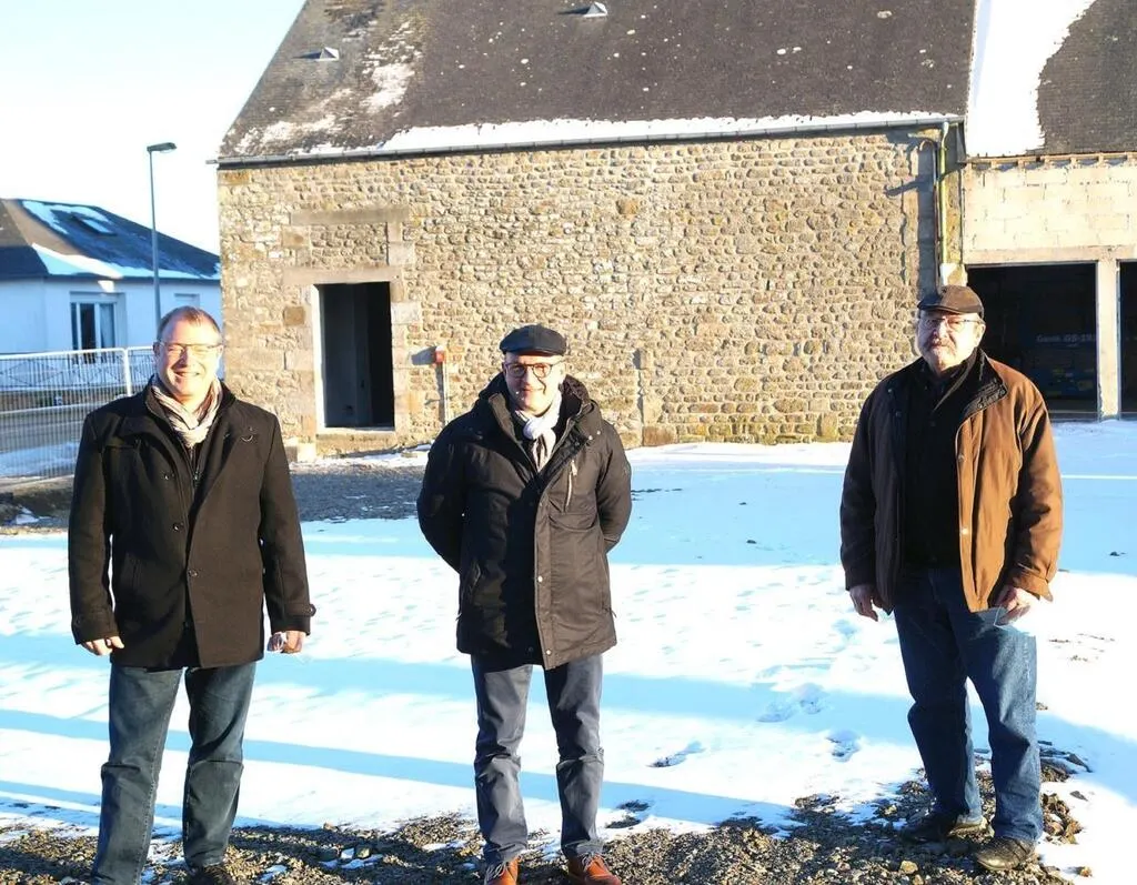 De gauche à droite, Thierry Aubin, l’ancien maire, Michel Legalle, le maire actuel et Michel Chancerel, le premier adjoint se sont retrouvés sur la plate-forme qui va accueillir l’agrandissement. © Ouest-France