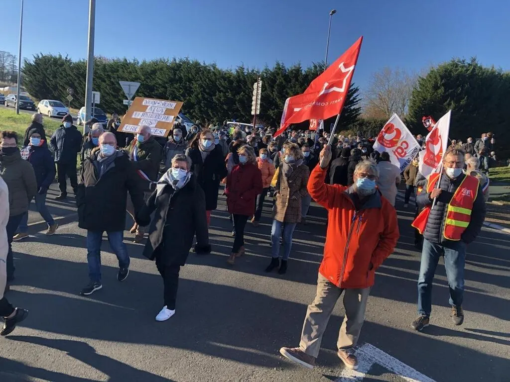 Malgré la volte-face de la direction de l’hôpital de Mamers, en Sarthe, qui annule sa décision de fermeture temporaire, plus de 400 personnes sont venues montrer leur volonté de préserver ce service, ce mardi 23 novembre 2021.