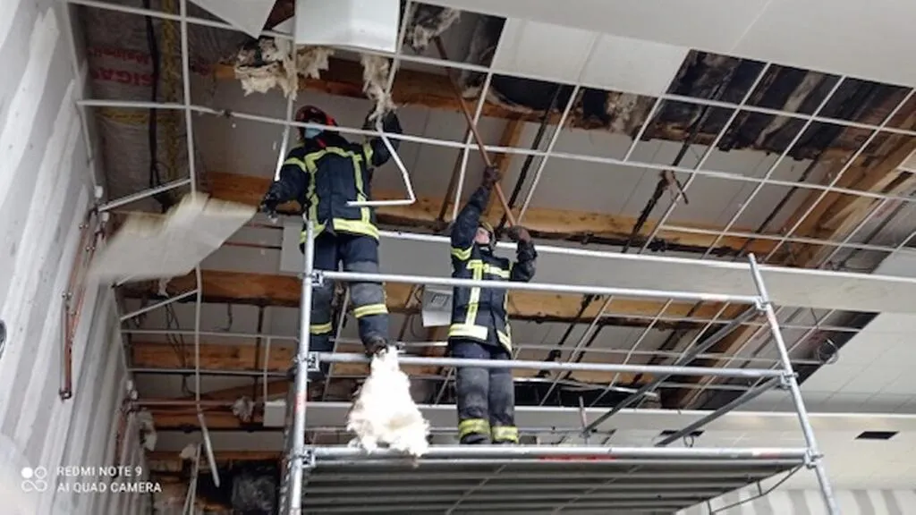 « Le feu aurait pris alors qu’un ouvrier était en train de souder au niveau du sous-plafond, explique le chef de groupe. Le mur et le faux plafond ont été endommagés par le feu couvant. »