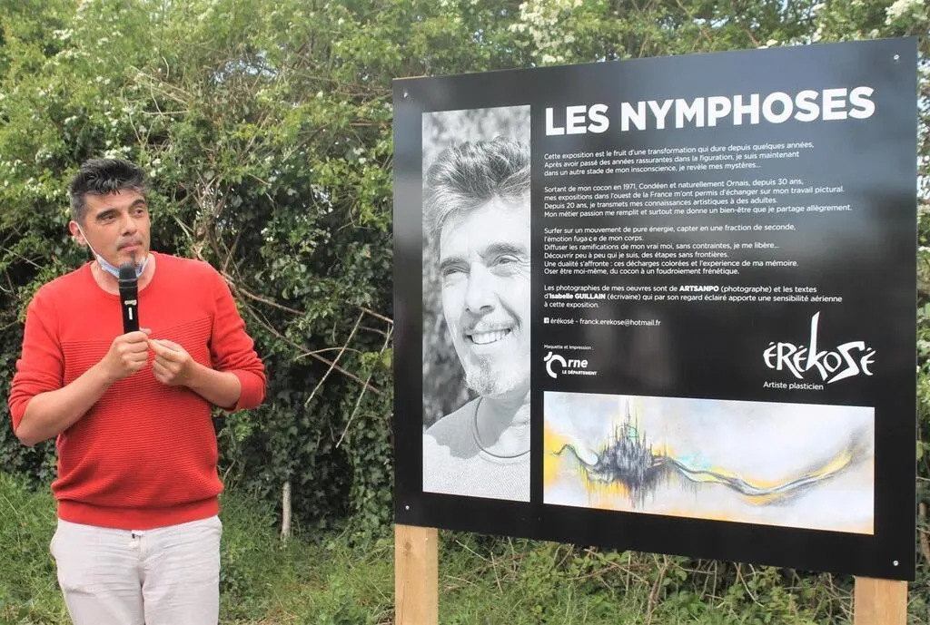 Le plasticien condéen, Franck Hucher, dit Erékosé, présente son exposition « Les Nymphoses », sur la voie verte. Ouest-france