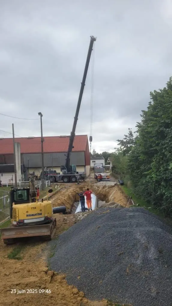 Le chantier du gymnase de Saint-Germain-du-Corbéis (Orne) se poursuit, en ce mois de juin 2025. Une nouvelle cuve de récupération d’eau a notamment été installée récemment. L’occasion de faire le point sur ce projet central pour la municipalité.