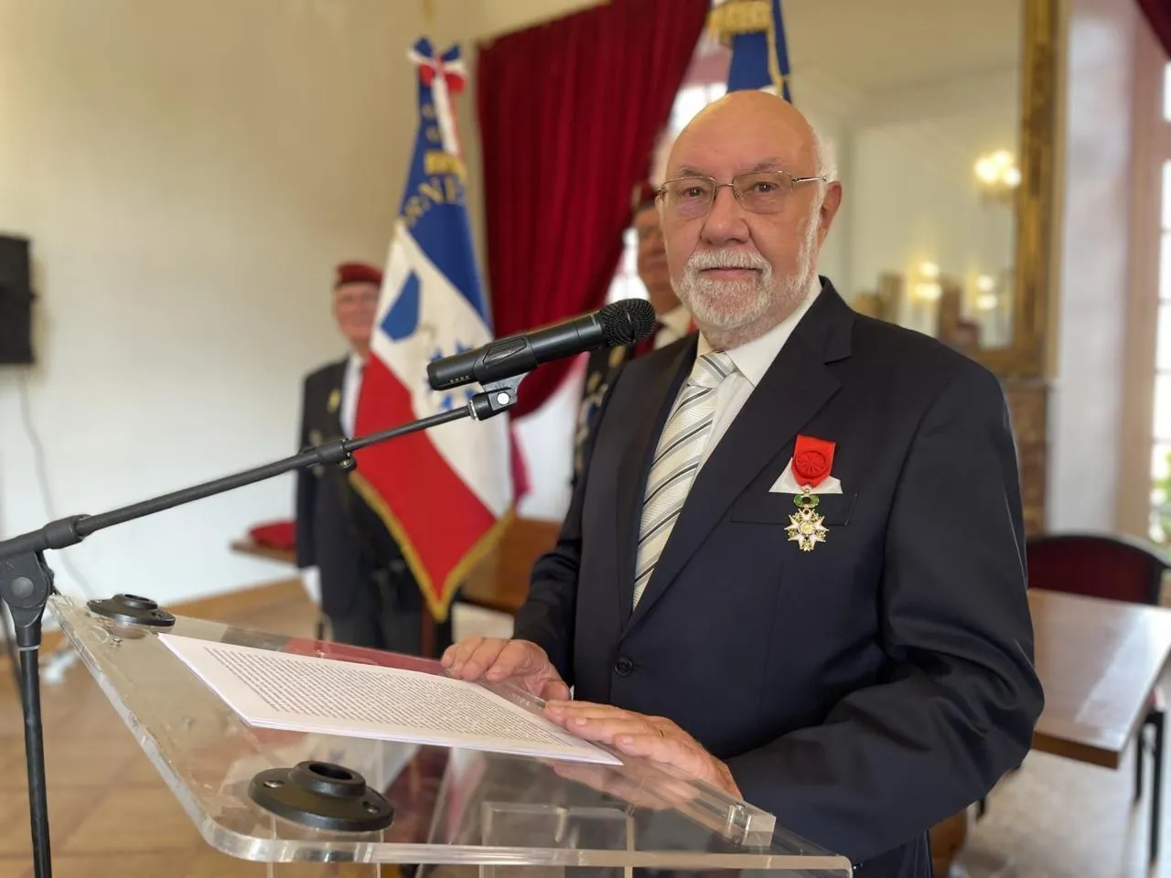 Jacques Frénéhard a reçu l’insigne d’officier de la Légion d’honneur, samedi 4 octobre 2025, à L’Aigle. © Ouest-France