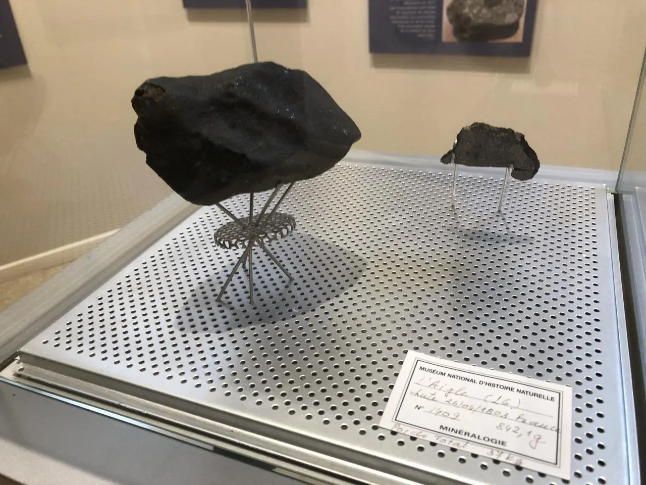 On peut voir ce morceau de météorite tombé dans les environs de L’Aigle au début du XIXe siècle dans le musée municipal de la ville. © Ouest-France