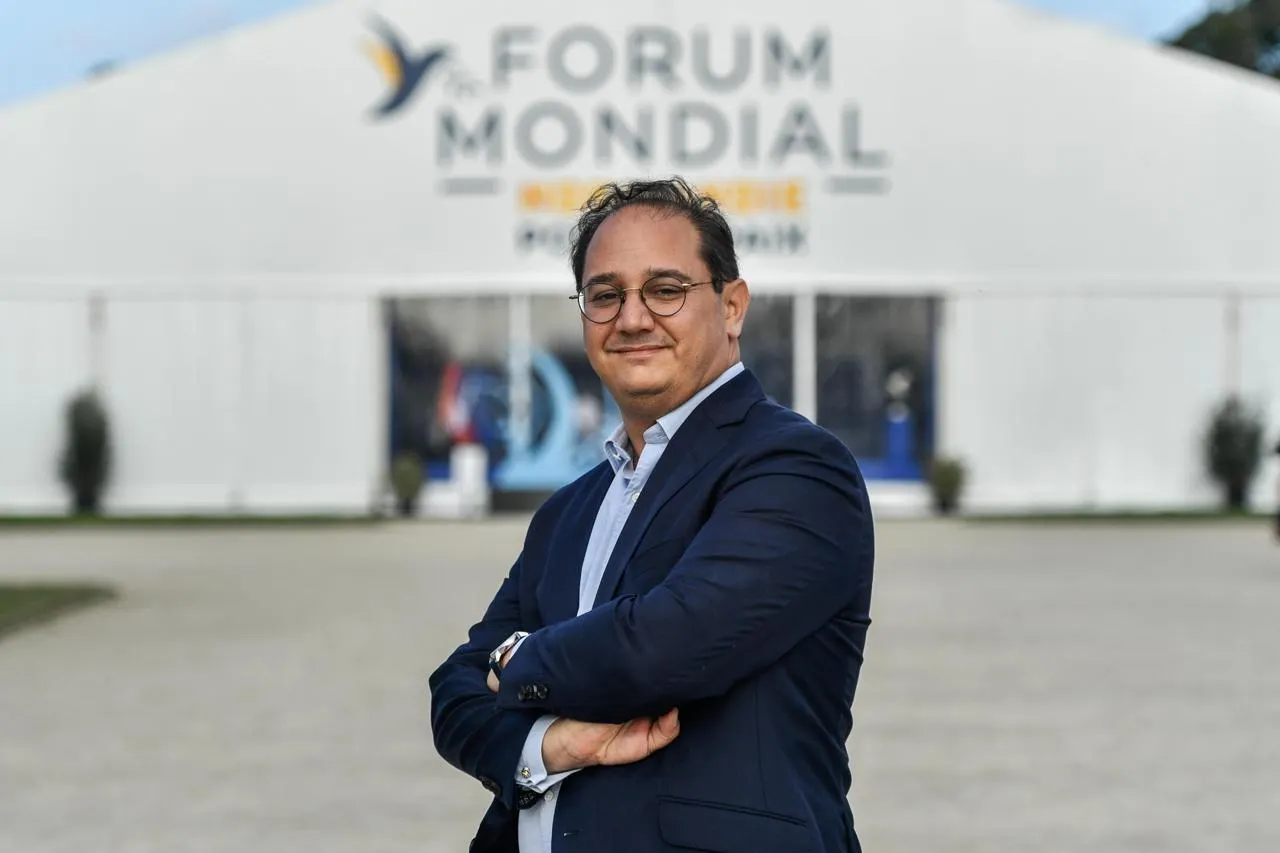 François-Xavier Priollaud, vice-président de la Région Normandie en charge de l’organisation du Forum mondial Normandie pour la paix, lors de la 6e édition du Forum en 2023. © Martin Roche, archives Ouest-France