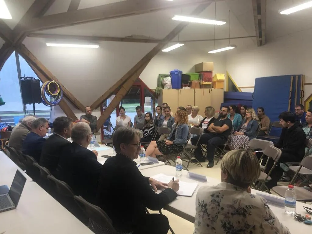 À la réunion, les parents, les élus de l’intercommunalité, Laurence Brillaud, inspectrice, Jean-Luc Legrand, directeur académique des services de l’éducation nationale (DASEN) et son adjoint Yannick Ruban étaient présents. © Ouest-France