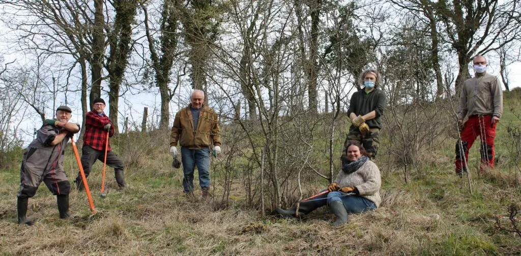 Ils étaient six, samedi, à se retrousser les manches pour entretenir une partie de l’hectare et demi du coteau. © Ouest-France