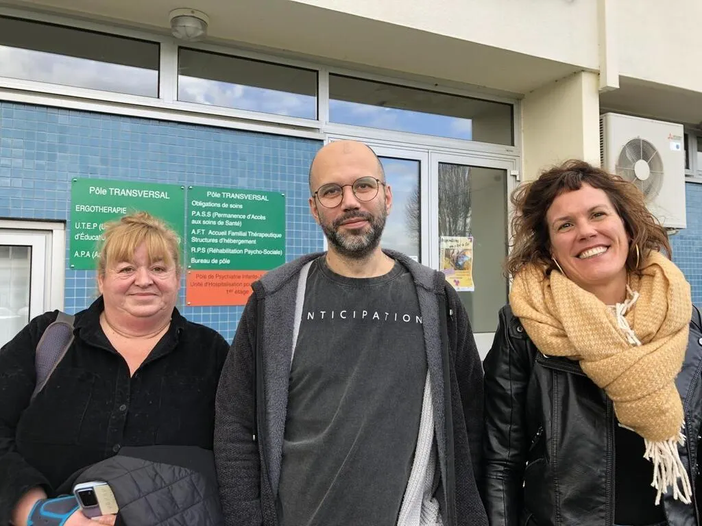 René-Claude et Annie Hibon, famille d’accueil, Coralie Boulland, infirmière, Eric Jouin, patient, et Honorine Brière, cadre de santé. © Ouest-France