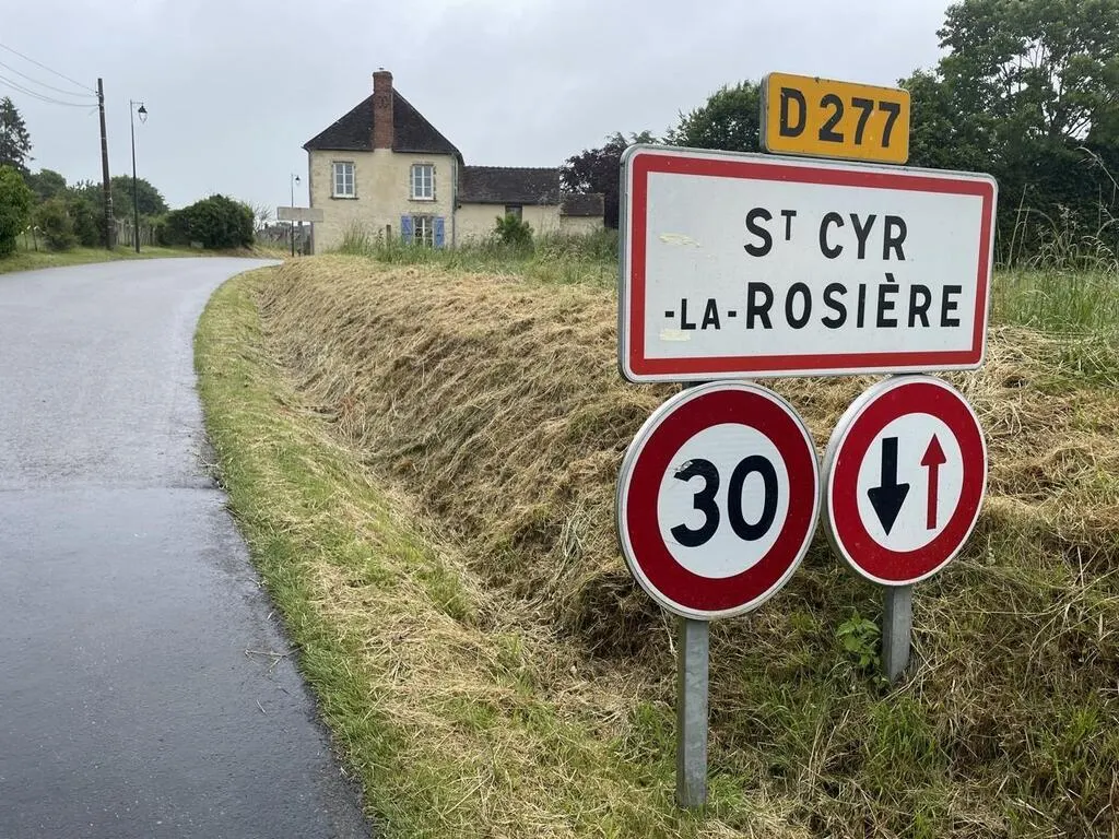 Saint-Cyr-la-Rosière. Sa mairie sans prétention, son joli clocher d’ardoises, sa petite salle des fêtes et… C’est à peu près tout.