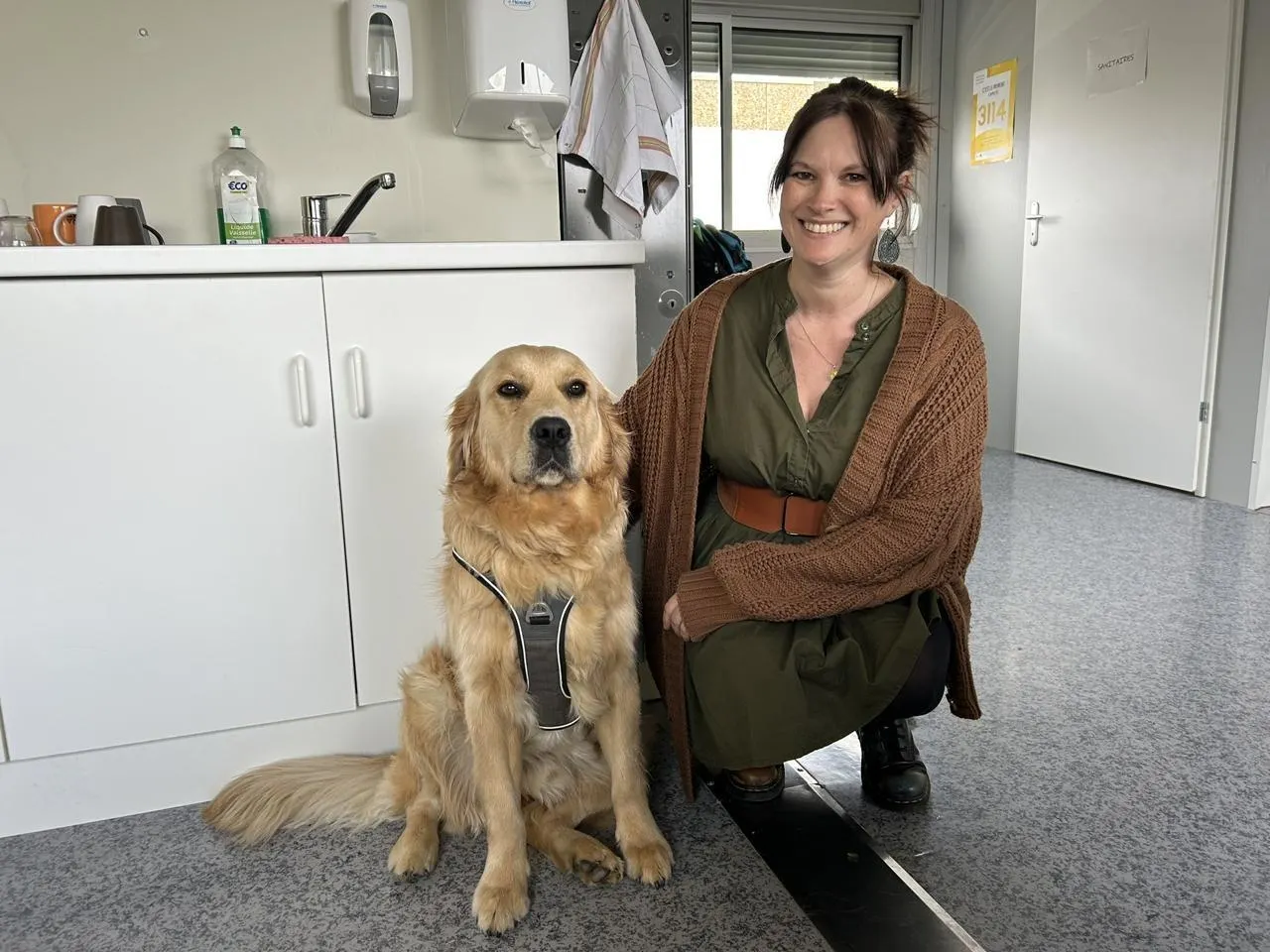 Shadow, golden retriever de deux ans et sa maîtresse et infirmière au collège Jean- Monnet de Flers, Floriane Michaux. © OUEST-FRANCE