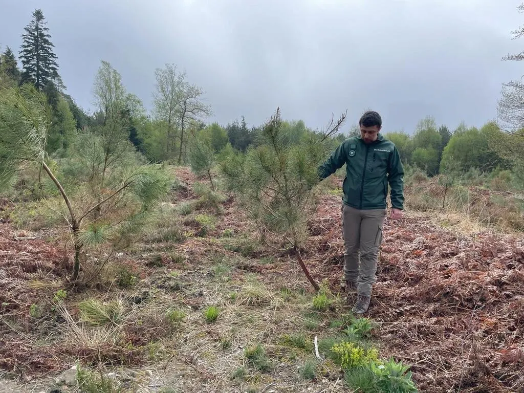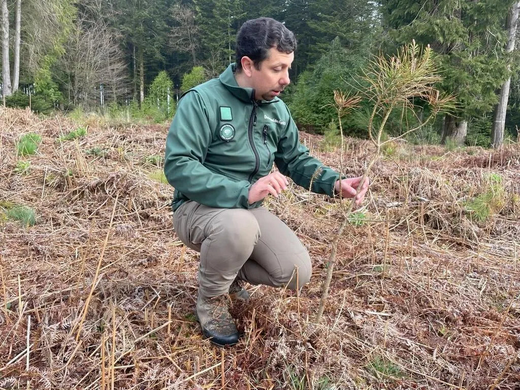 Florian Lemaire, responsable chasse et travaux pour l’agence d’Alençon de l’ONF, détaille les dégâts effectués par les ongulés sur les parcelles consacrées au renouvellement des massifs. © Ouest-France