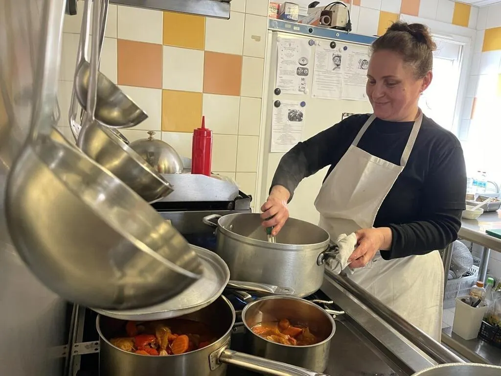 Ce jour-là , dans les cuisines du restaurant Aux goûts d’ici et d’ailleurs, Esengun, 55 ans, s’attelle à la préparation d’un poulet au citron et d’un coq au vin. © Ouest-France