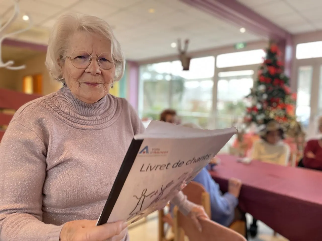 Marcelle Manoury, 90 ans, pousse la chansonnette devant les autres résidents. Enfant déjà , elle aimait entonner des chants de Noël. « C’étaient des moments heureux. » © Ouest-France