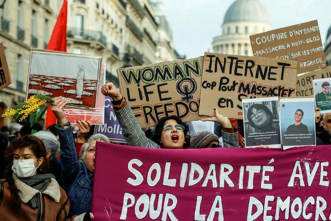 Des manifestations ont eu lieu en France pour soutenir les Iraniens, ici à Paris, le 17 janvier. © Mohammed Badra / EPA
