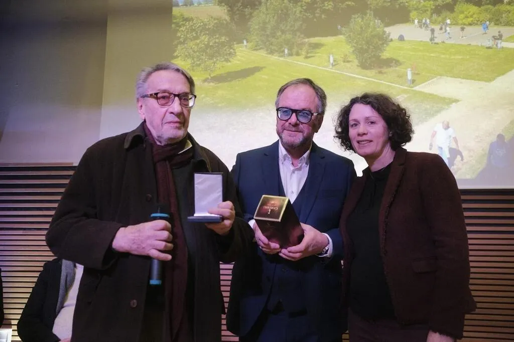 Le maire de Lonrai (Orne) Sylvain Launay était présent sur scène avec Christophe Bayard, qui animait la cérémonie. © Ouest-France