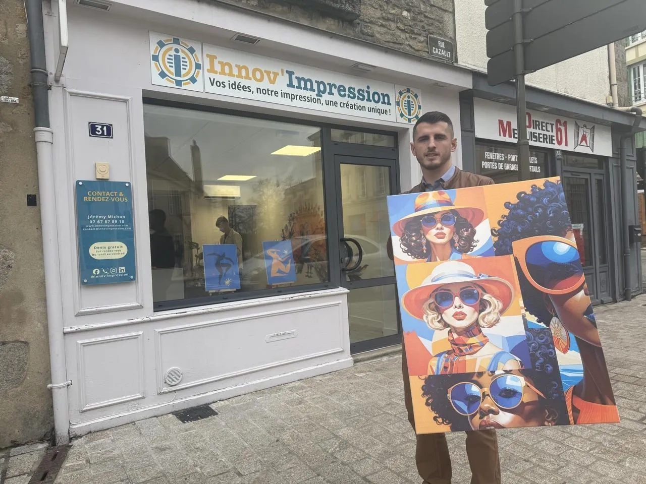 Deux mois après le lancement de son activité d’impression sur murs et objets, Jérémy Michon s’installe dans l’ancien local de la Pâtisserie créative, à Alençon. Il y accueille, dès jeudi 4 décembre 2025, ses clients avec une machine professionnelle installée sur place.