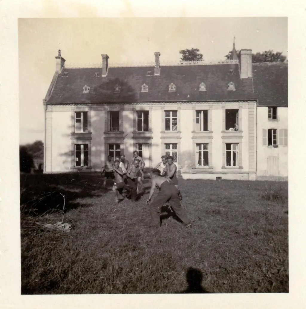 Une rare photo de Moulins-sur-Orne pendant l’occupation : moment récréatif pour des soldats allemands dans le parc du château de Bel-Oeuvre. © Collection Luc Bauché