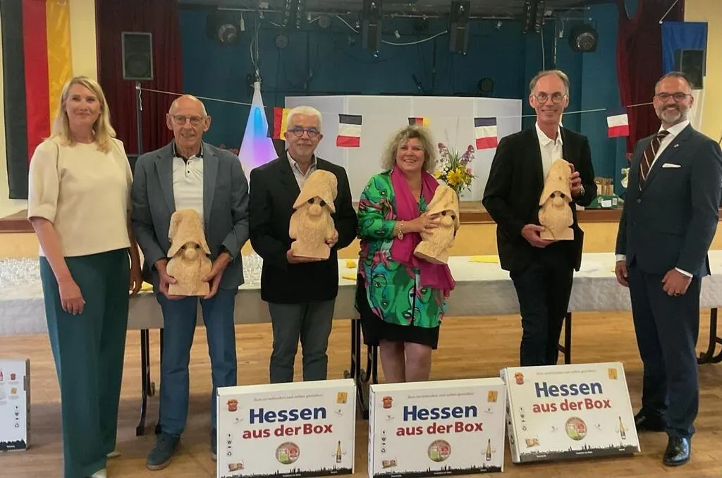 Suivait la remise de présents, à la présidente et aux maires français, un Nain du Taunus, « forgé à la tronçonneuse, avec le bois des résineux du massif forestier de Schmitten », et un coffret gourmand du Hessen, « en attendant de nous retrouver en Allemagne, mi-mai 2026, pour le 45e anniversaire du jumelage ».