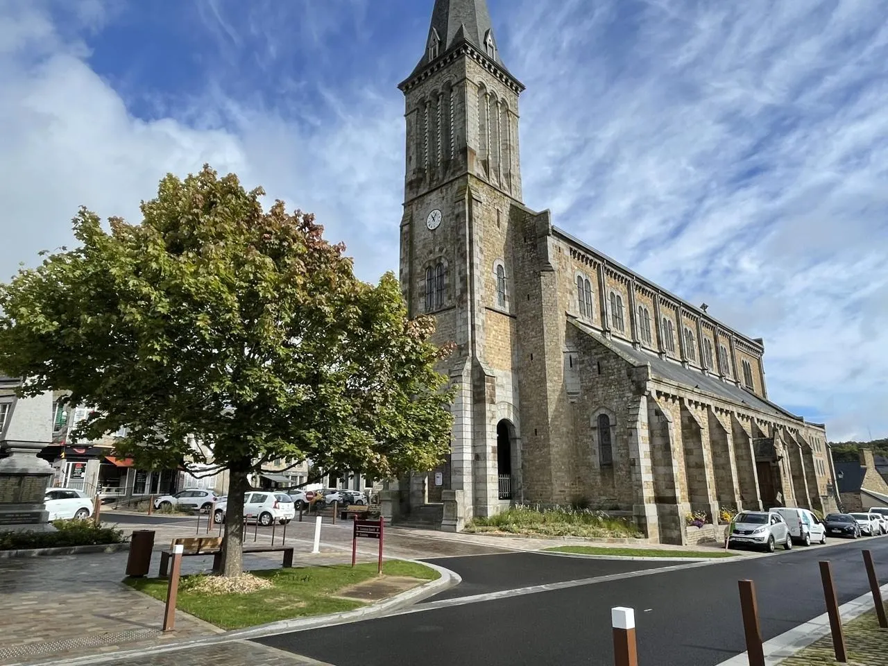 La place Saint-Vigor rénovée à Athis-de-l’Orne, commune déléguée d’Athis-Val-de-Rouvre, en septembre 2025. Ouest-France