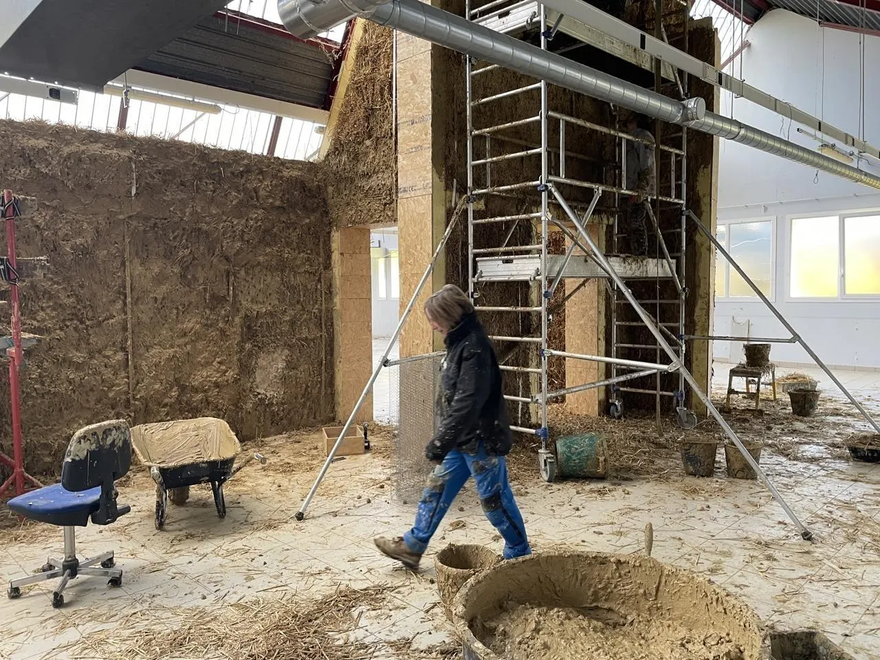 Au sein du pôle social d’économie sociale et solidaire (ESS) de Saint-Georges-des-Groseillers, dans l’Orne, géré par Flers agglo, il a été décidé d’utiliser de la paille pour isoler et bâtir une grande scène. Pendant quelques jours, des travailleurs en insertion ont participé à ce chantier particulier.