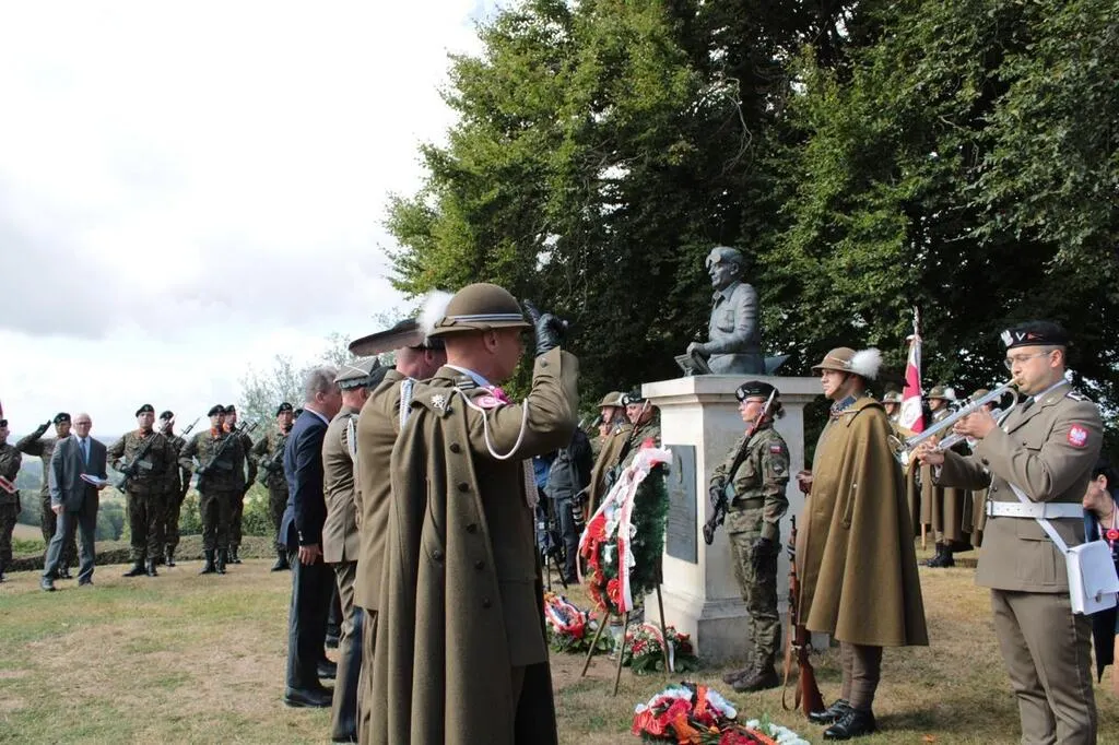 Hommage des Polonais devant le buste du Général Maczek, le 20 août 2022 à Montormel. Ouest-France
