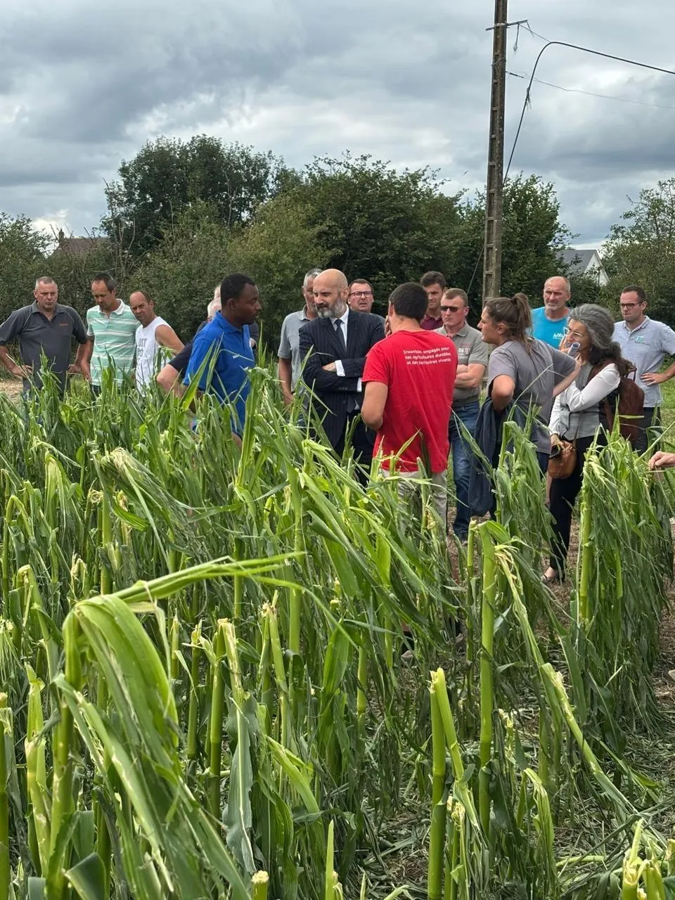 Après le passage de l’orage de mercredi 25 juin, le préfet de l’Eure est venu constater, à la demande des JA, les dégâts dans des parcelles agricoles à  Boissey-le-Châtel. © Jeunes Agriculteurs