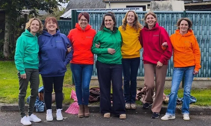 Un sweat-shirt personnalisé a été offert à chaque salariée. De gauche à droite : Erica Guérin, Nathalie Dumesnil, Sonia Brière, Betty Sallot, Héléna Baloche, Estelle Bourbilières, Aline Blanchet. © Ouest-France
