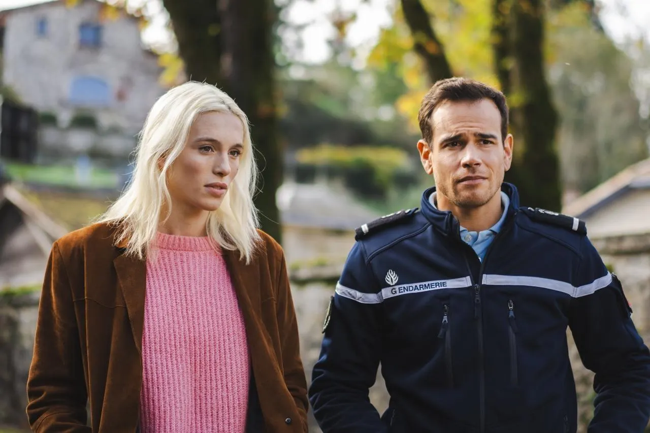 Andréa Furet et Adrien Rob dans « Meurtres en Périgord vert ». © Baptiste Langinier - France Télévisions - Mesdames Productions
