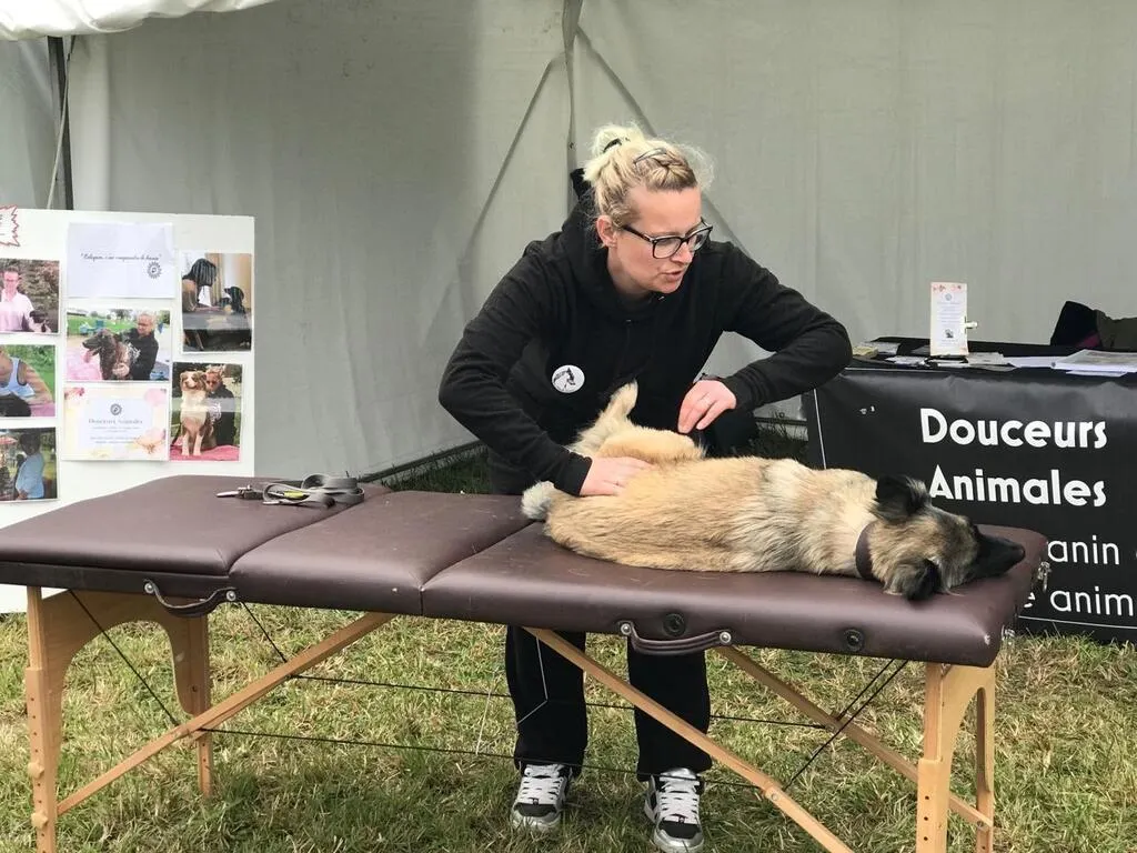 C’est une des nouveautés de cette édition de la foire Saint-Denis, à Montilly-sur-Noireau : un espace plus grand, réservé aux métiers et aux associations qui concernent le meilleur ami de l’homme. Après des démonstrations de flair avec l’association Nosework France, les visiteurs ont pu assister à des massages canins (nous ne sommes qu’une trentaine en France à disposer de cette certification