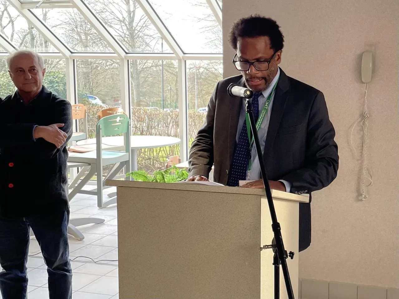 Laurent Vérin, le directeur du groupement hospitalier de territoire (GHT) les Collines de Normandie, qui comprend entre autres les centres hospitaliers de Flers (Orne) et Vire-Normandie (Calvados), sous les yeux du docteur Pierre-Emmanuel Henneresse, président du comité médical d’établissement (CME). © Ouest-France