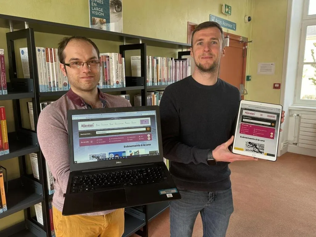 Joevin Columbu, coordinateur informatique et numérique, et Thomas Traversa, chef projet réseau, ont développé un nouveau site internet pour les médiathèques d’Alençon (Orne). © Ouest-France