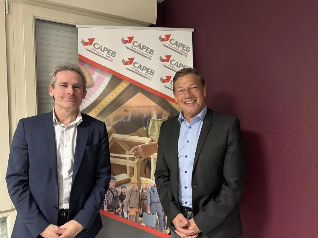 Bruno Balloche (à gauche), président de la Capeb de l’Orne, a rencontré Jean-Christophe Repon, président national du syndicat patronal. © Ouest-France