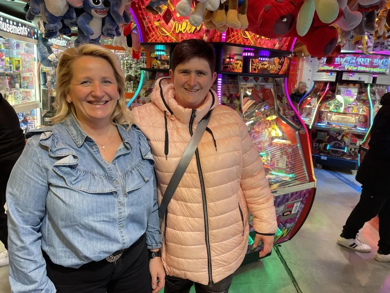 Brenda d’Orval (à gauche), responsable de la salle d’amusement, tout sourire de retrouver ses clients, à l’image de Fiona, originaire d’Honfleur. © Ouest-France