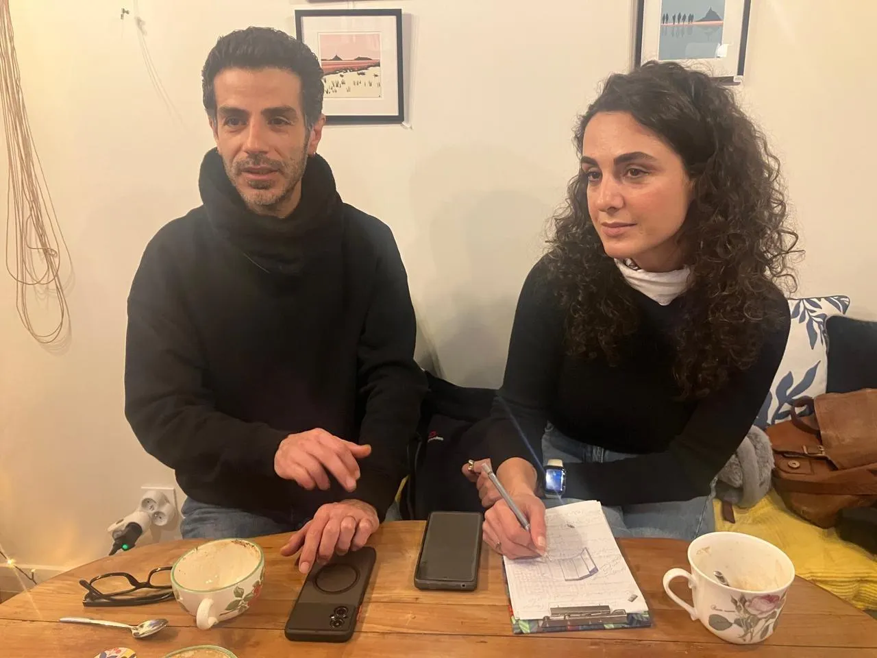 Bahman Chenegi et Sepideh Razmjoo, deux artistes iraniens, sont très inquiets pour leurs familles et leurs amis. Ils sont réfugiés dans la Manche depuis juillet 2025. © Ouest-France