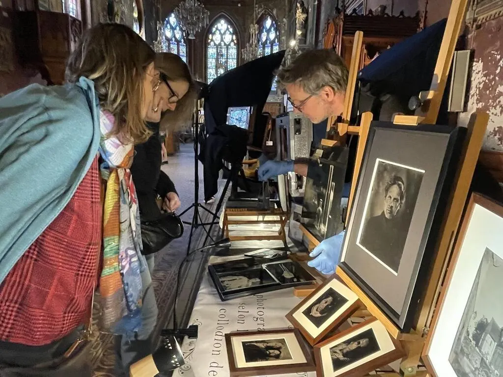 Deux visiteurs découvrent les photographies au collodion humide de Jean-Baptiste Rengeval. © Ouest-France