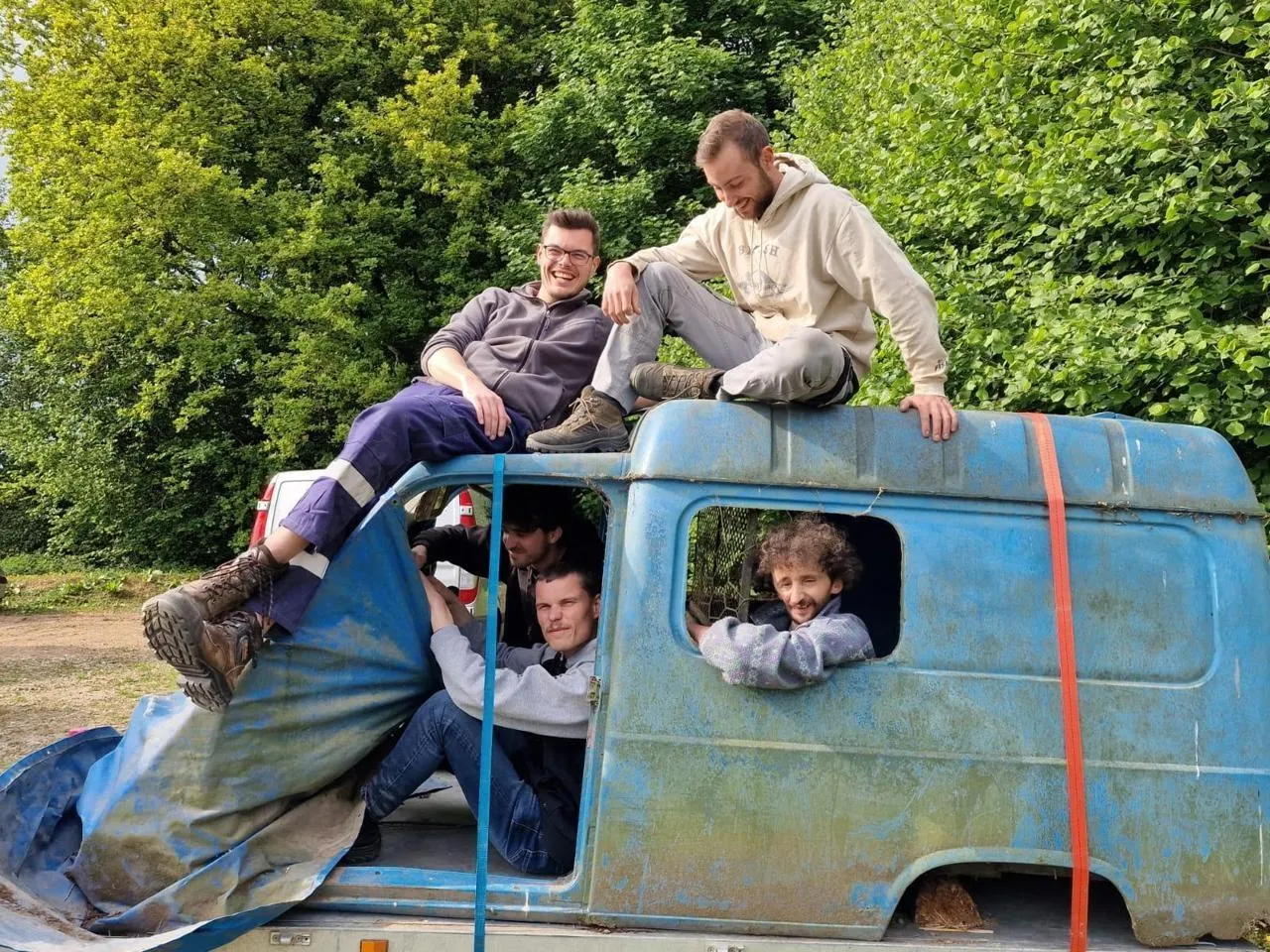 Plusieurs membres de l’association Hole right (Malo Pereira à la fenêtre de la voiture). © DR/Malo Pereira