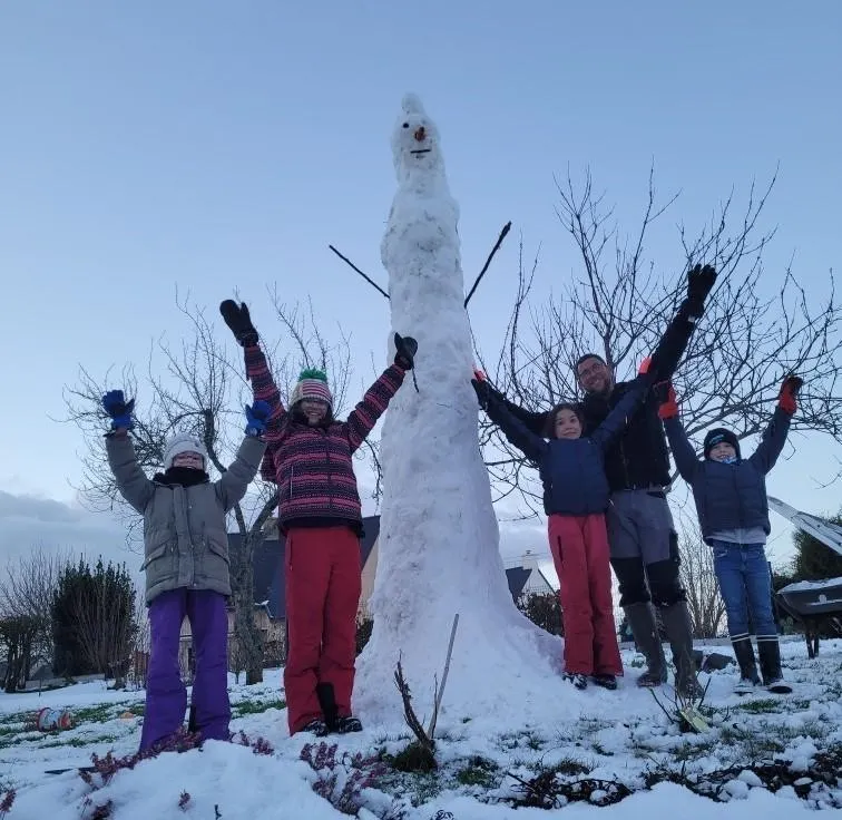 Il a fallu s’y mettre à dix mains, ce mardi 6 janvier 2026, pour tenter d’établir un record. Jean-François Labbé, habitant de Montpinchon (Manche), accompagné de Maelyne, Zoé, 12 ans, Nathan et Romane, 8 ans, ont profité de l’épisode neigeux en Normandie pour dresser un bonhomme de neige hors norme.